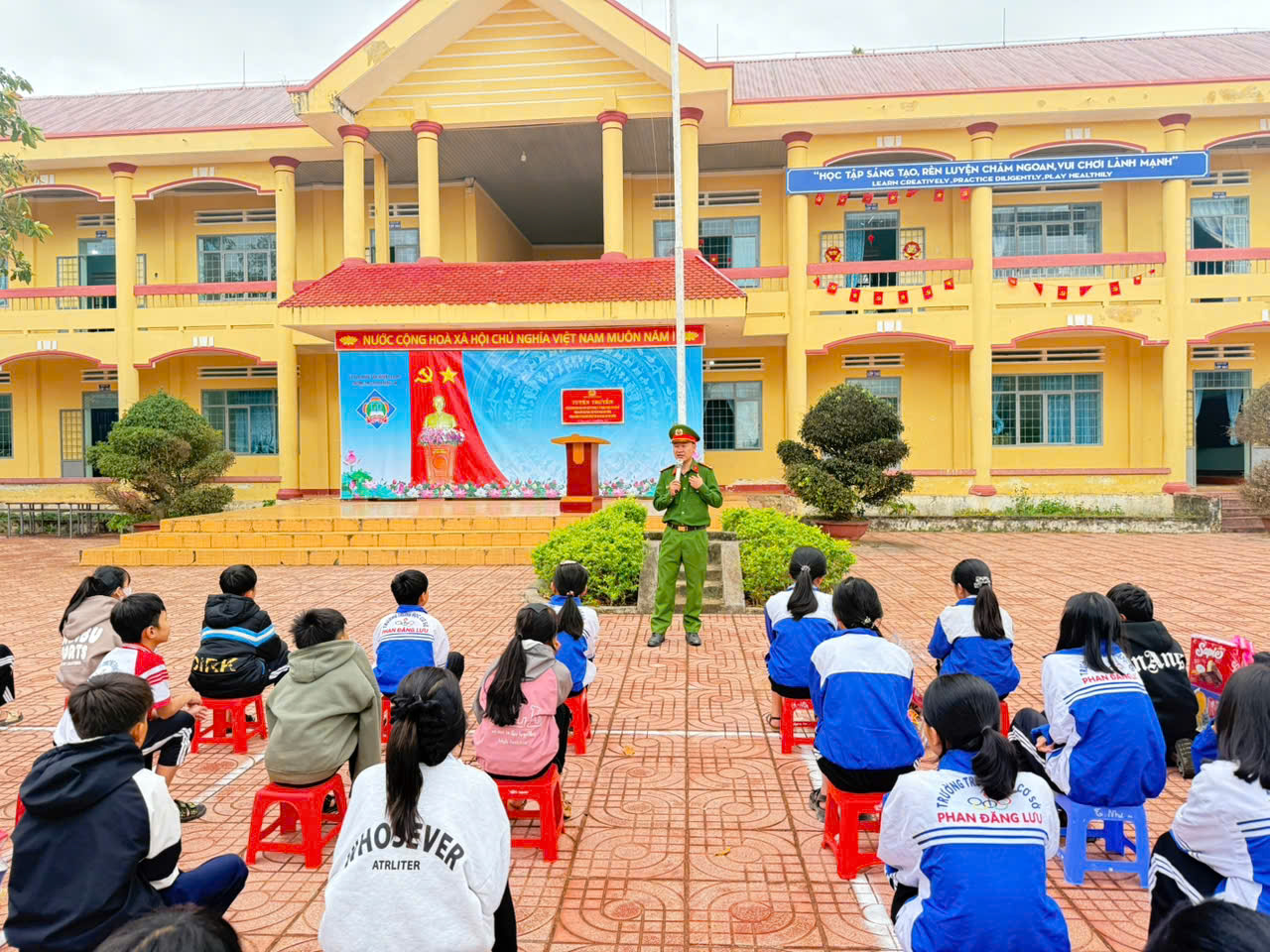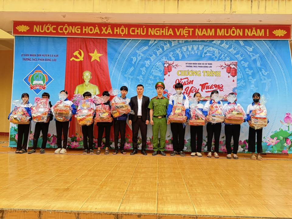 Trong chương trình cũng phối kết hợp với công an xã Cư Yang tuyên truyền, hướng dẫn học sinh nâng cao ý thức chấp hành pháp luật, bảo đảm an toàn trật tự, không đốt pháo nổ, không đua xe trái phép trong dịp Tết, góp phần xây dựng một mùa xuân văn minh, an toàn và hạnh phúc.